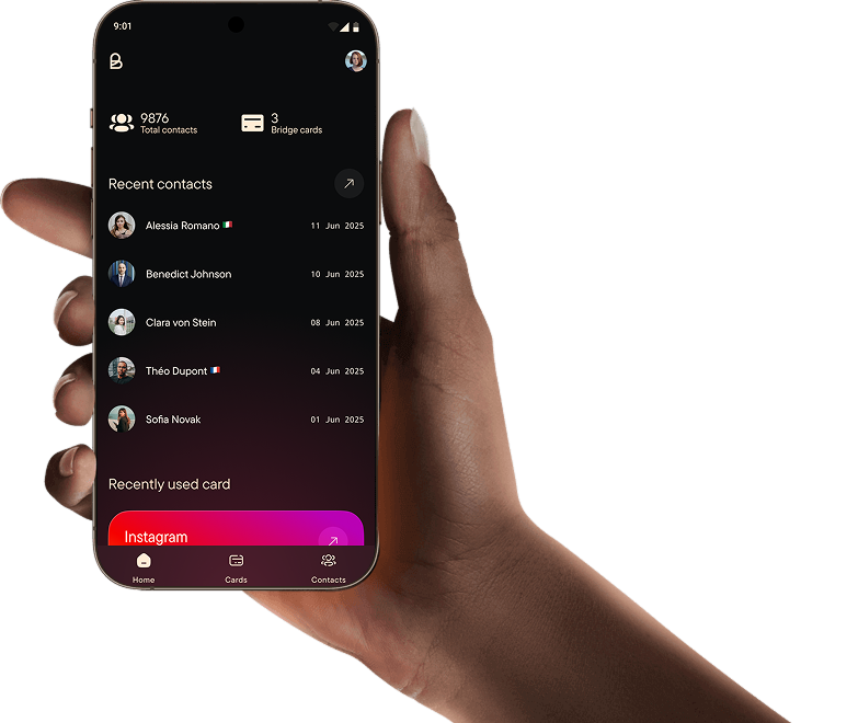 Bridge helps you instantly share your contact details and stay in touch for years. Never lose a person!